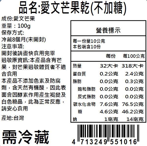 愛文芒果乾(不加糖)100g