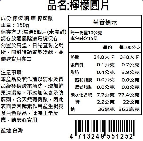 甘心樂意檸檬圓片果乾採低溫烘乾,經烘乾切片,